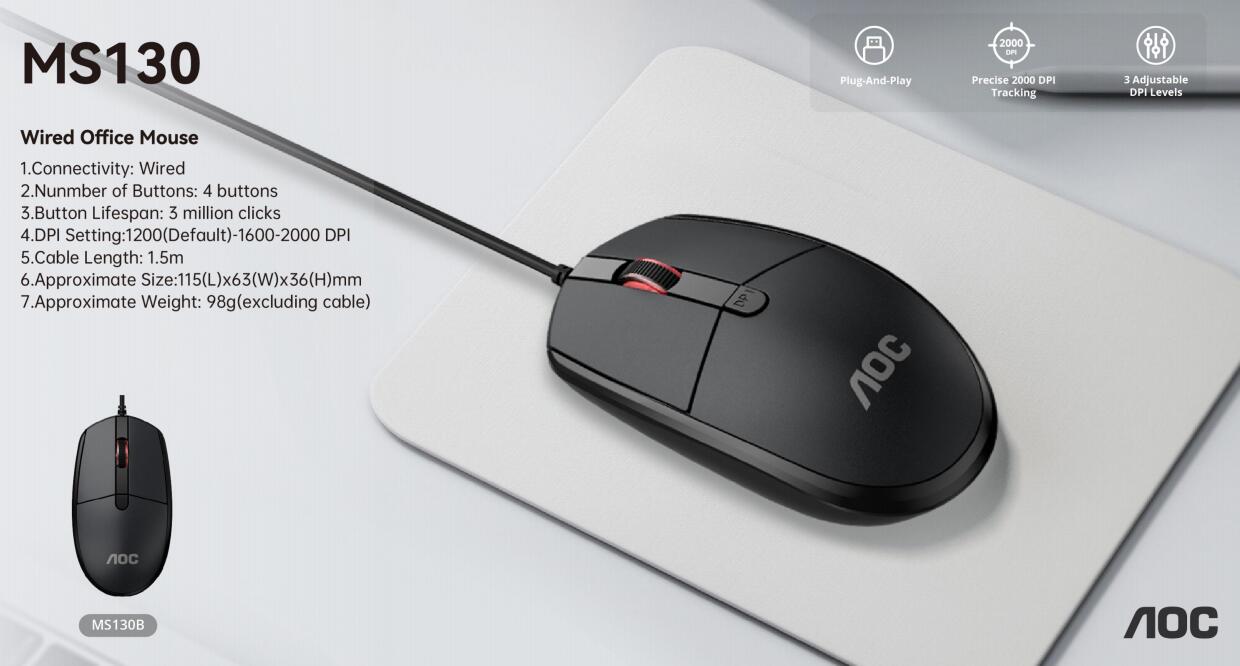 4.DPI Setting:1200(Default)-1600-2000 DPI