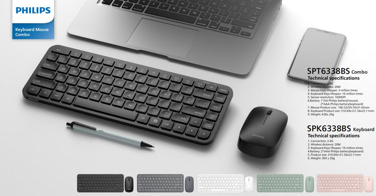 6.Battery: 1*AA Philips battery(mouse), 2*AAA Philips battery(keyboard)