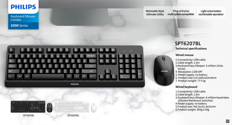 1.Connectivity: UsB cable2.Cable length: 1.5m3.Keyboard keys lifespan: 3 million clicks(mute) 4.Resolution: 1200 DPl5. Power supply: no battery6.Product size:110.2x65.6x34.8mm7.Product weight: 77±5g